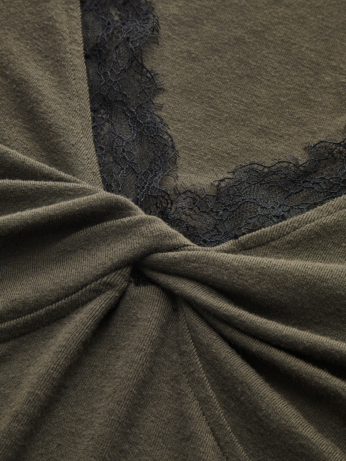 Lace Trim V-Neck Twist Long-Sleeve Top